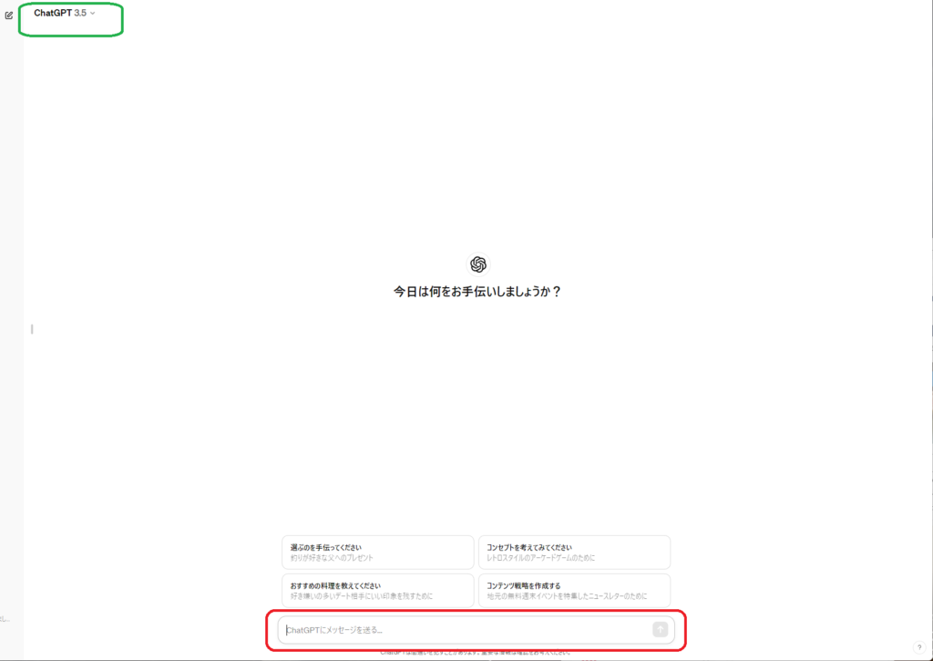 ChatGPTのインターフェースには、入力フィールドがあります。ここにテキストを入力して、「送信」ボタンを押すことで、ChatGPTとの対話を開始できます。質問をしたり、特定のトピックについて話をしたりすることが可能です。